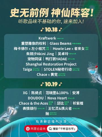 昨晚临睡前刷朋友圈,突然被满屏的荧光棒照片淹没了——所有人都在转干杯音乐节的阵容海报。电子乐鼻祖Kraftwerk的名字下面,我表妹用红色马克笔标了个巨大的星星,旁边写着’姐!Glass Beams的票帮我抢!’