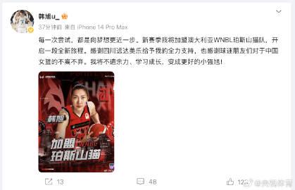 最近刷微博,看到一条让所有篮球迷都热血沸腾的消息——中国女篮的骄傲韩旭,正式宣布将在2025-26赛季加盟澳大利亚WNBL联赛的珀斯山猫队!这可是中国女篮球员首次登陆澳大利亚顶级女篮联赛,意义非凡啊。