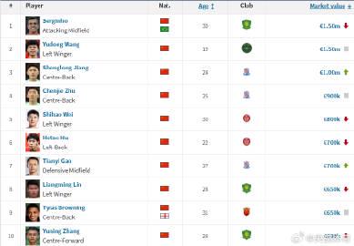 再看看榜单的其他变化,也挺有意思。上海申花的蒋圣龙,身价涨到了100万欧,杀进了中国球员前三。这位高大的中后卫,凭借在联赛和国家队(特别是世预赛对阵新加坡头球破门)的稳定表现,身价上涨是实至名归。这和王钰栋的“潜力股”属性形成了微妙对比:一个靠即战力提升价值,一个靠未来预期撑起价格。