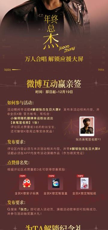 张杰生日月开启!手把手教你参与“年终总杰”K歌应援,赢取专属福利 发布于2025年12月10日 作者:MiKi 张杰生日月专属活动“年终总杰”K歌应援正式上线,本文详解参与方式与福利,带你一起用歌声为偶像送上最暖心的祝福。 继续阅读