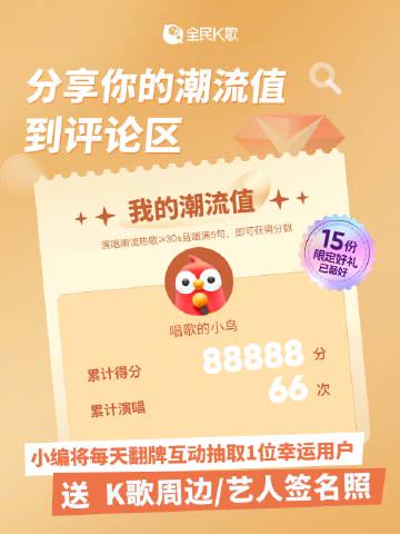 继续阅读全民K歌最新推出的潮流值活动火爆进行中,本文详细介绍如何通过演唱热歌获取潮流值、参与评论互动赢取定制周边和艺人签名照,助你轻松加入这场音乐狂欢。